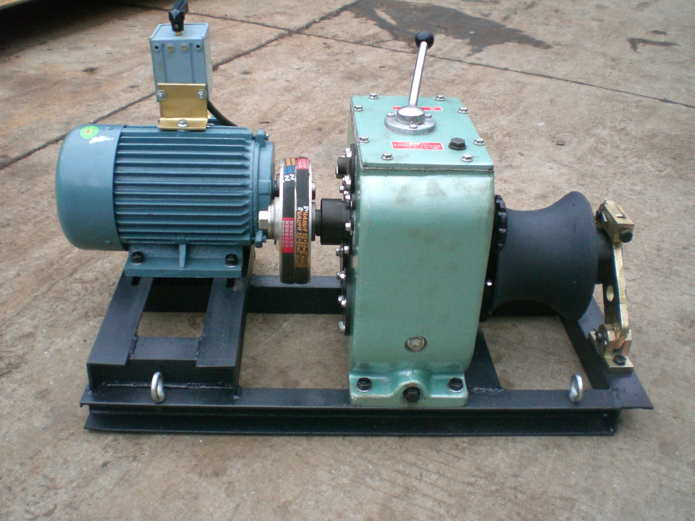 erection, traction cable, line, hoisting tools or heavy objects, the electric winch is driven by a belt, 'effectively prevent the damage of overload, there are pros and cons and the speed of file, anti reverse 'gear moment to ensure construction safety.